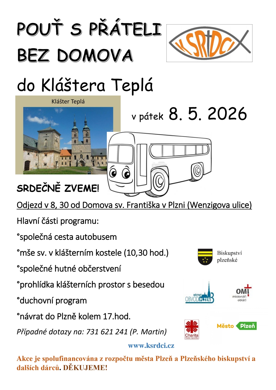 Pouť do Kláštera Teplá 28. 10. 2024 - 46 přátel bez domova, 5 členů týmu a spřátelená rodina z Nové Farmy (maminka Lucie s 5 dětmi). Bohoslužba byla velmi soustředěná s interaktivní promluvou. Moc děkujeme panu kuchaři Liborovi za výbornou gulášovou polévku a přijetí řeholní komunitou premonstrátů. Prohlídka s průvodkyní měla také velký úspěch. Pak ještě bylo sdílení o tom, jaké to je být bez domova a jak z toho ven. Zase nejvíc zabralo svědectví Nikolky z Tábora, která si v životě prošla lecčíms a teď sama pracuje v Charitě Tábor jako terénní pracovnice a začala se zapojovat do aktivit K SRDCI.